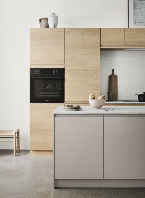 'Les formes organiques sont au cœur de ce design', explique Claus Johnsen. 'En les associant à des tons chauds et à des poignées intégrées, on obtient une expérience tactile et visuellement apaisante.' Pour Evento, Kvik a lancé un panneau facilement personnalisable. 'Les clients peuvent eux-mêmes remplacer la plaque arrière de la poignée intégrée par une nouvelle couleur, comme l'arizona beige ou l'apricot. Il est donc facile de personnaliser la cuisine en fonction de ses envies.'